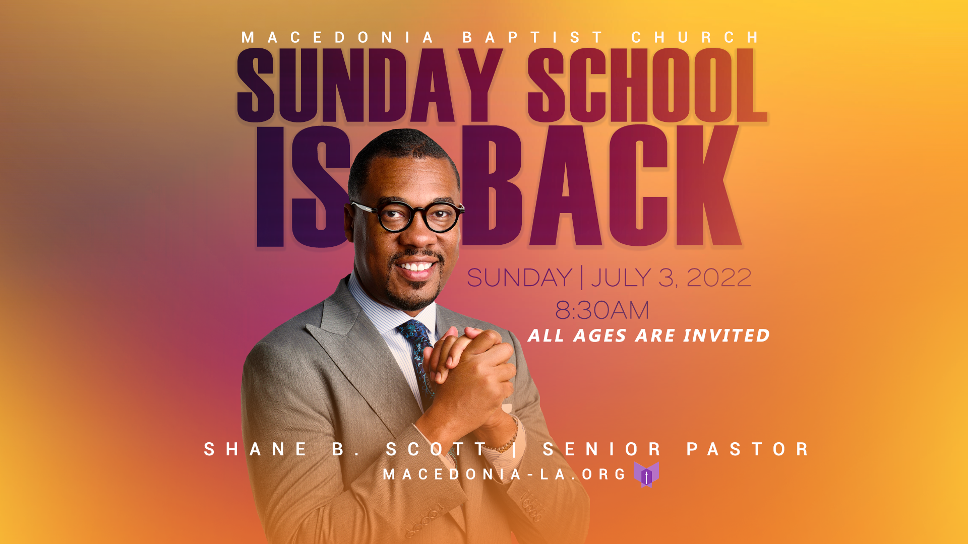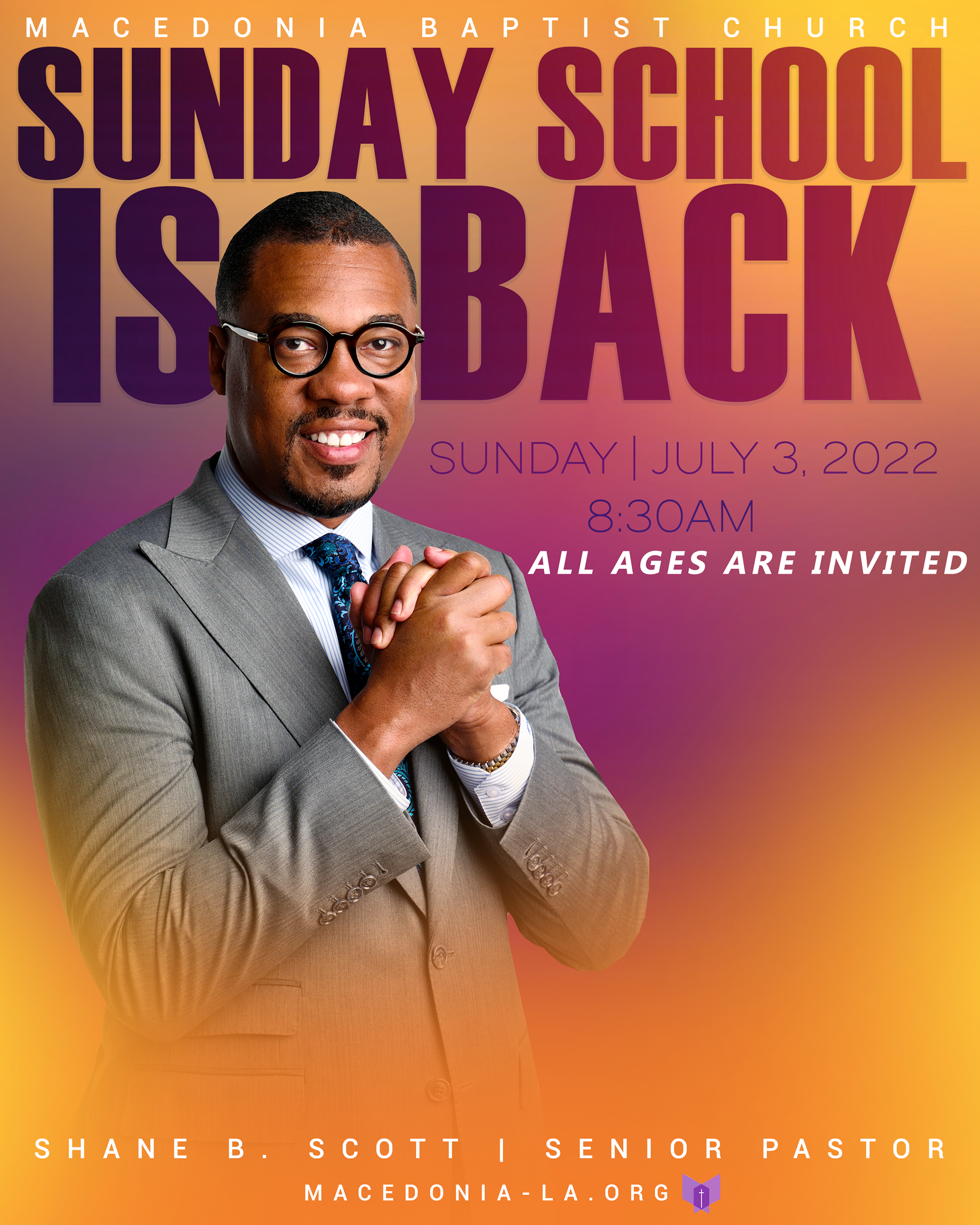 The Macedonia Baptist Church Sunday design was created to mark the return of Sunday School with a fresh and uplifting visual approach. My goal was to design something that introduced a renewed sense of energy while remaining rooted in warmth and familiarity. This design supports the church’s mission by welcoming both returning and new attendees as it reintroduced this important part of its Sunday experience.
