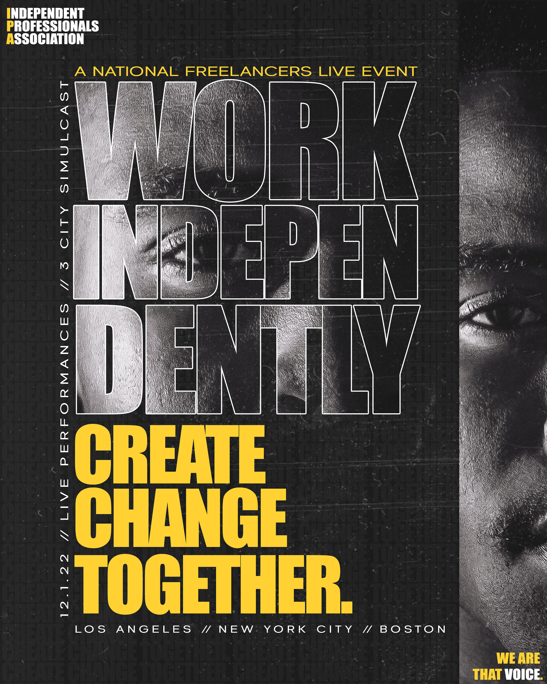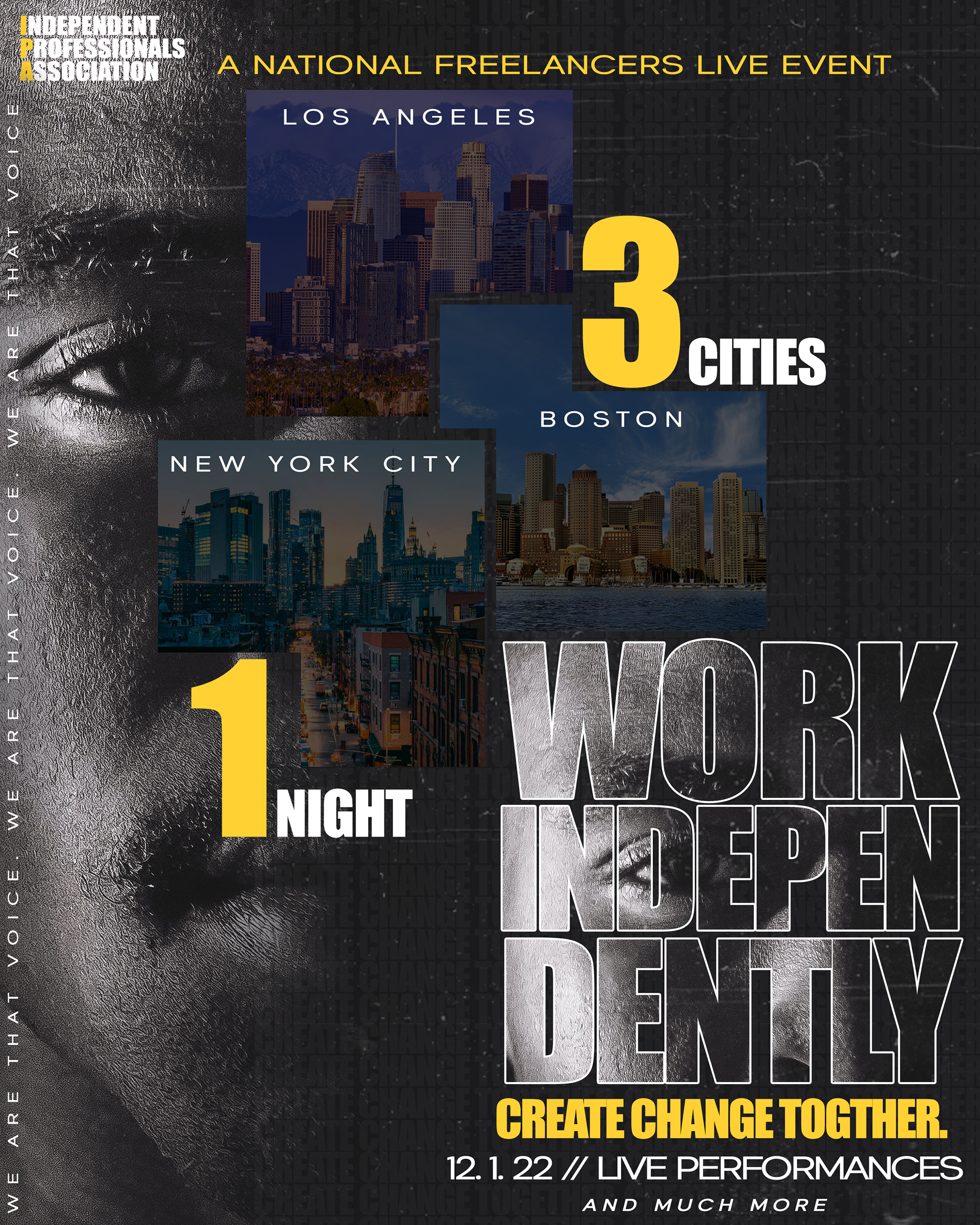 The IPA Business Networking Mixer graphic and branding focused on highlighting the grit and authenticity of each city, balanced with subtle moments of lightness through the use of yellow. The final design captured the energy of each cities culture while remaining warm and inviting.